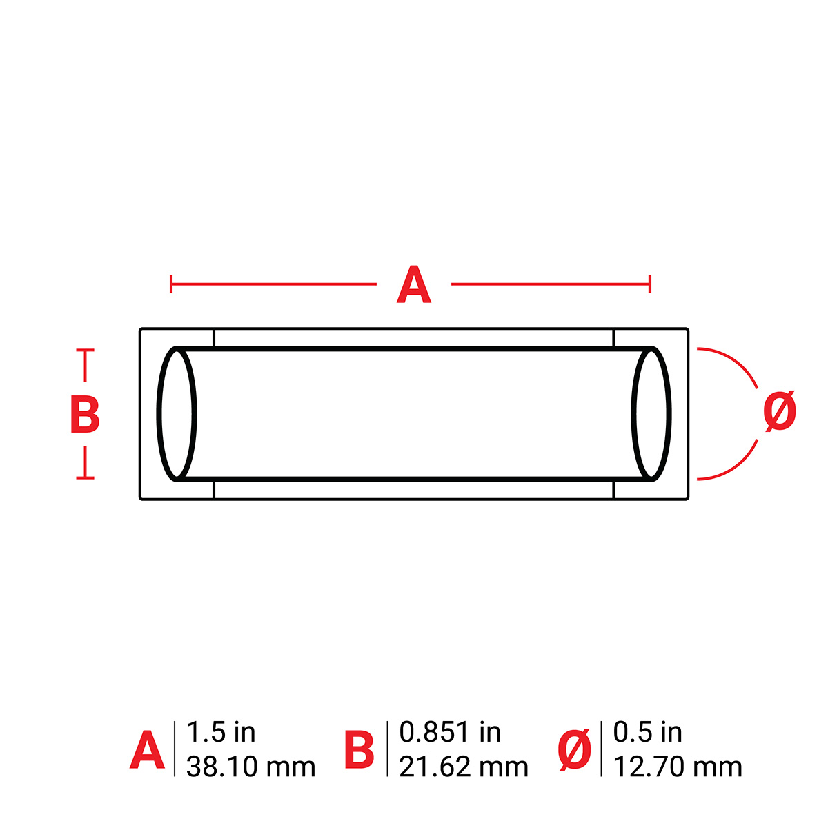 | Mouwmaat (metrisch) | 12.70 mm Dia x 38.10 mm W |