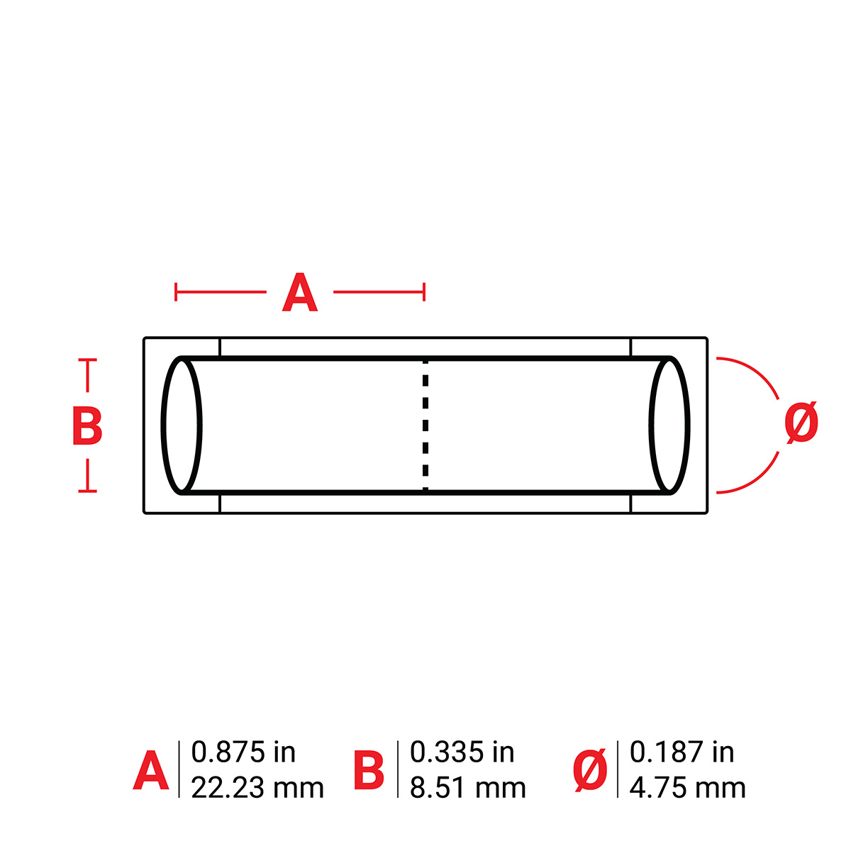 | Mouwmaat (metrisch) | 4.75 mm Dia x 22.23 mm W |