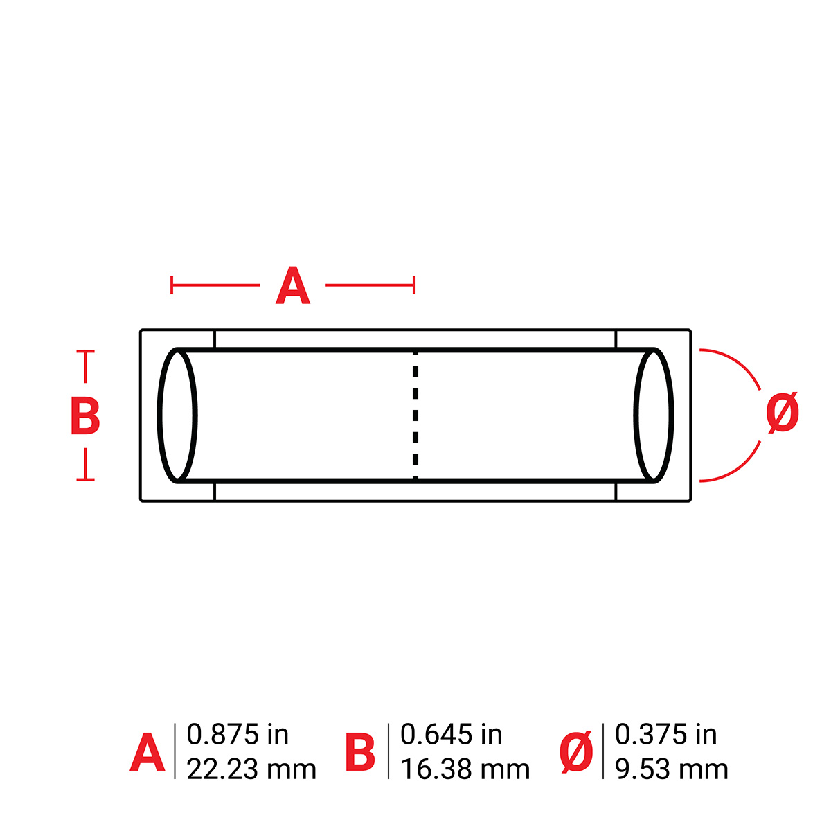 | Mouwmaat (metrisch) | 9.53 mm Dia x 22.23 mm W |
