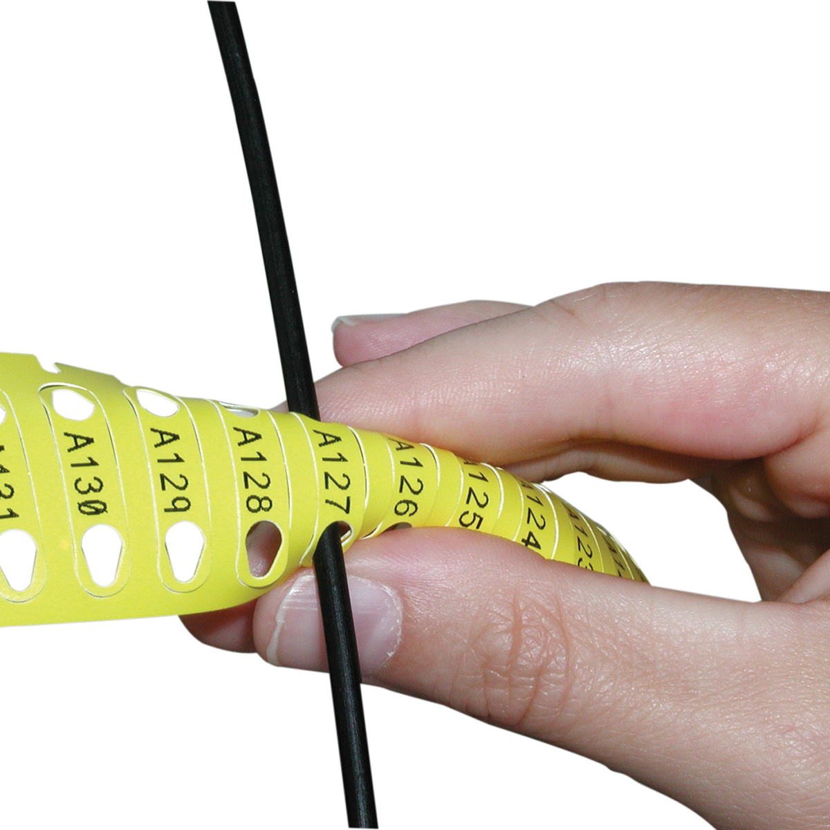 De Rapido™-krimpkousen voor draadmarkering kunnen snel en vlot aangebracht worden. Knijp de zijkanten van het materiaal gewoon samen, haal de draad door de openingen en trek de draad weg om de merker vrij te geven.