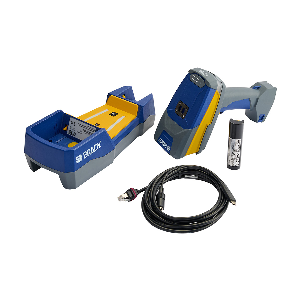 | Inhoud van het pakket | This i6100 printer ships in a cardboard box and includes a Brady Workstation Design & Print Essentials, a Quick-start Guide and a EU Power plug, a V3200 Wireless Barcode reader, a V1300 Bluetooth cradle, a V1200 Li-ion Battery, a USB cable 1m and an AC adapter. |