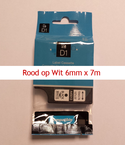 A43615 Dymo Compatibele D1 Standaard Vinyl Tape Rood op Wit 6mm