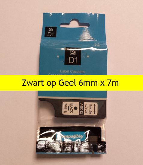A43618 Dymo Compatibele D1 Standaard Vinyl Tape Zwart op Geel 6mm