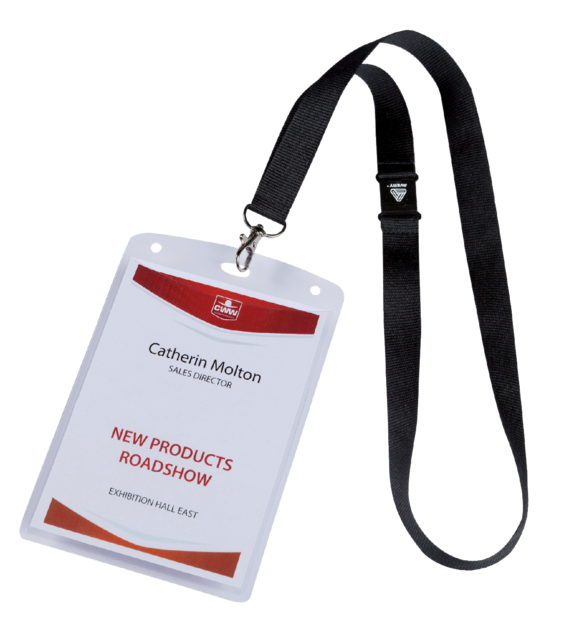 - Het groter formaat badge is ideaal voor evenementen of seminars waar de badge meer informatie moet bevatten zoals een plattegrond omschrijving.
