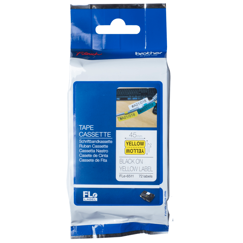 Productinformatie "Brother FLe-6511 voorgestanste kabelvlag zwart op geel"