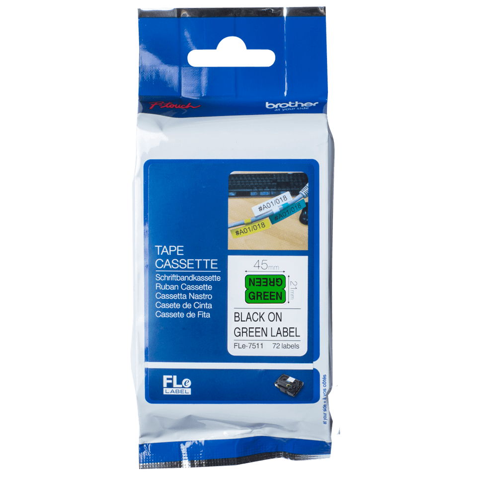 Met deze originele Brother FLe-7511 tapecassette voor PT modellen maakt u gegarandeerd scherpe en goed leesbare labels, die bestand zijn tegen extreme omstandigheden en zeer lang meegaan.