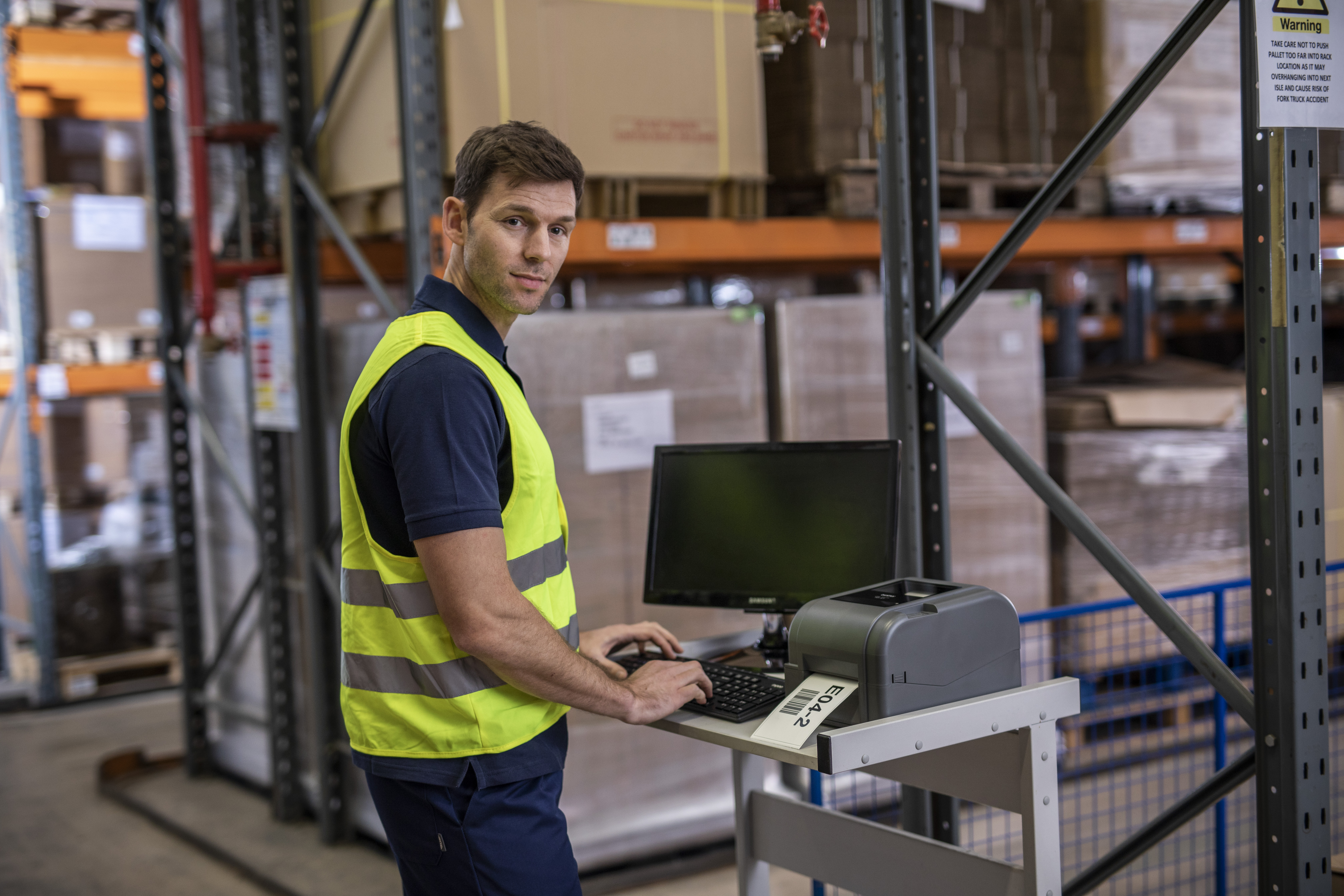 Professionele labelprinter (wit/grijs), Thermal transfer/Direct thermisch, 64MB RAM/128MB FLASH, 20 tot 112 mm labelbreedte, 300 dpi, TT labelrollen en universele labels, USB, USB host, RS232-serieel, LAN, incl USB kabel