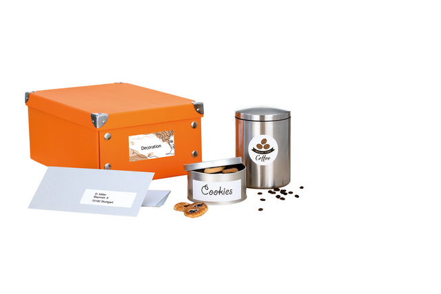 - Etiketten, speciaal voor inkjetprinters, op A4-vellen, zelfklevend, 80 vel per verpakking.