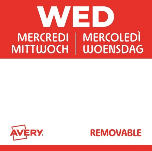 Etiket Avery HACCP woensdag-rood 25x25mm 1000st
