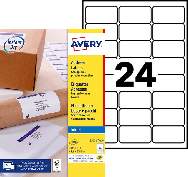 Eigenschappen "Etiket Avery J8159-100 63.5x33.9mm wit 2400 etiketten"