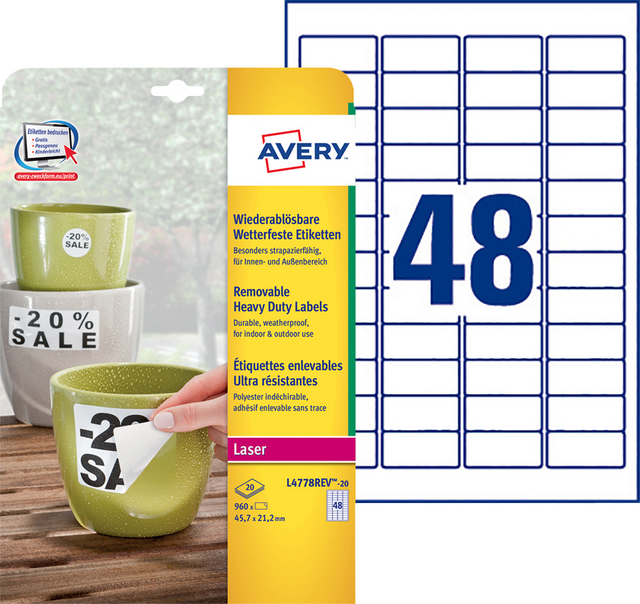 Eigenschappen "Etiket Avery L4778REV 45.7x21.2mm wit 960 etiketten"