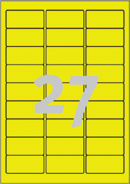 Eigenschappen "Etiket Avery L6004-25 63.5x29.6 neon geel 675 etiketten"