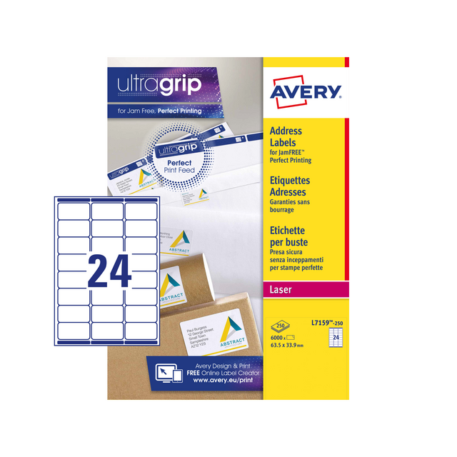 Eigenschappen "Etiket Avery L7159-250 63.5x33.9mm wit 6000 etiketten"