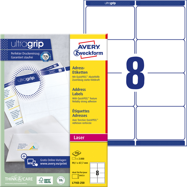 Etiket Avery L7165-250 99.1x67.7mm wit 2000 etiketten