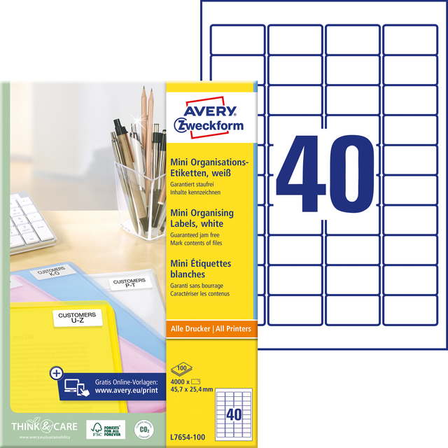 Eigenschappen "Etiket Avery L7654-100 45.7x25.4mm wit 4000 etiketten"