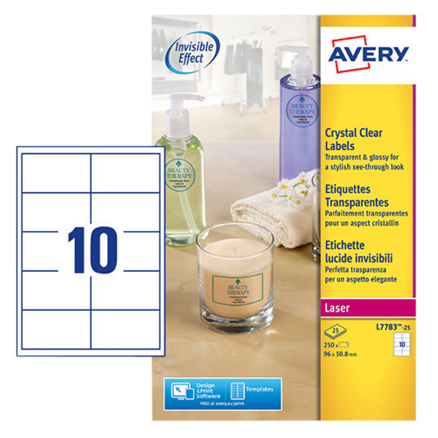 Eigenschappen "Etiket Avery L7783-25 96x50.8mm transparant 250 etiketten"