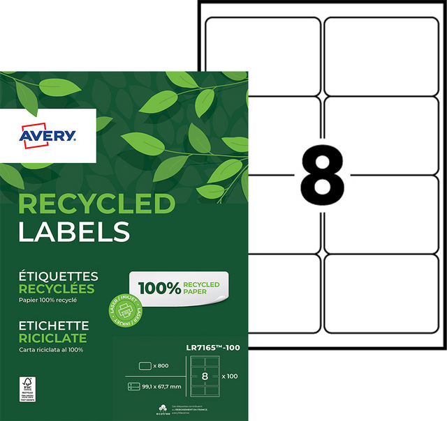 Etiket Avery LR7165-100 99.1x67.7mm recycled wit 800 etiketten
