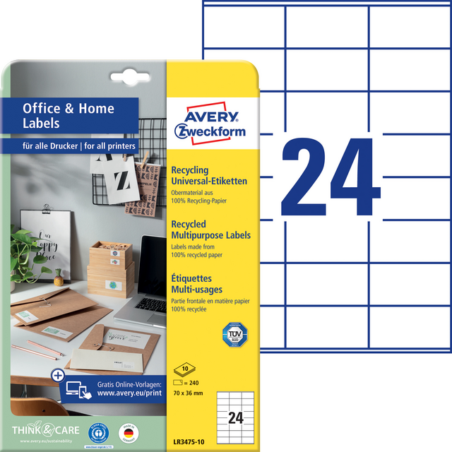 Eigenschappen "Etiket Avery Zweckform LR3475 70x36mm recycled wit 2400 etiketten"