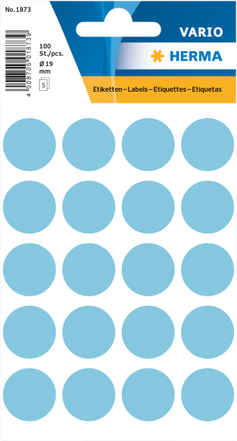 Eigenschappen "Etiket HERMA 1873 rond 19mm blauw 100stuks"
