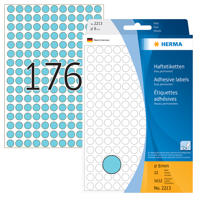 Eigenschappen "Etiket HERMA 2213 rond 8mm blauw 5632stuks"