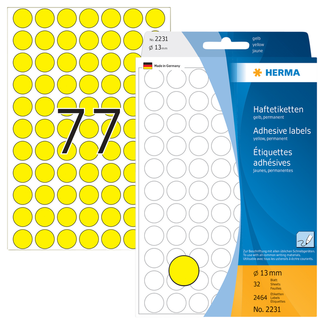 Eigenschappen "Etiket HERMA 2231 rond 13mm geel 2464stuks"