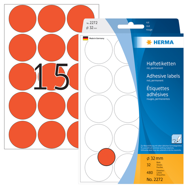 Eigenschappen "Etiket HERMA 2272 rond 32mm rood 480stuks"