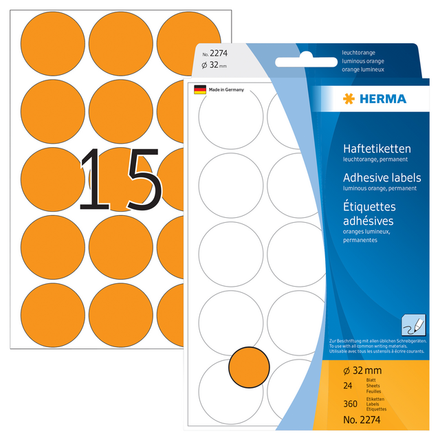 Eigenschappen "Etiket HERMA 2274 rond 32mm fluor oranje 360stuks"