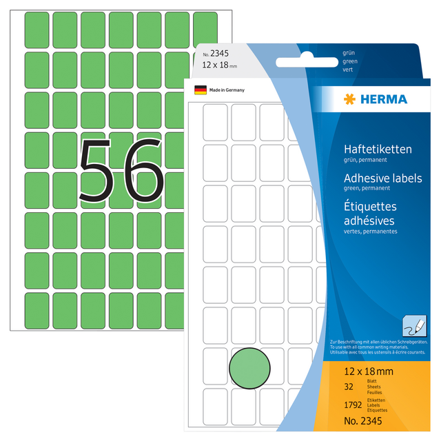 Eigenschappen "Etiket HERMA 2345 12x18mm groen 1792stuks"