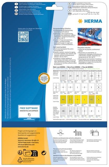 Eigenschappen "Etiket HERMA 4698 210x297mm weerbestendig wit 25stuks"