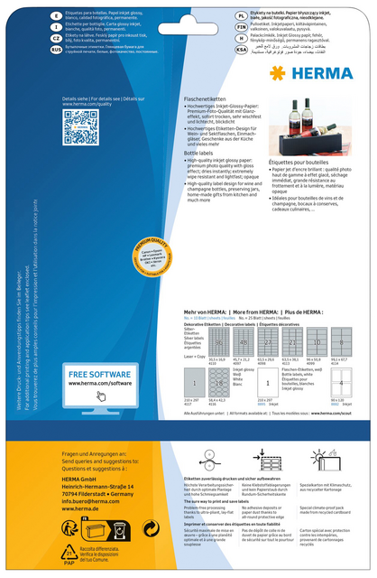"HERMA staat voor sterk materiaal, hoogwaardige etiketten en nauwkeurige modulaire etiketteermachines. Wij zijn gespecialiseerd in het hele gebied van de zelfklevende technologie en zijn de grootste fabrikant van Europa. Sinds 1906 overtuigen wij onze klanten met onze continue keten van knowhow en producten Made in Germany. De innovatieve zelfklevende laminaten, zelfklevende etiketten en etiketteermachines van HERMA bieden ook een oplossing voor uw etiketteertoepassing."