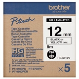 HGe-631v5 Breedte 12mm Lengte 8m Zwart op gele tape gelamineerd high grade 5 pack (5x HGe-631)