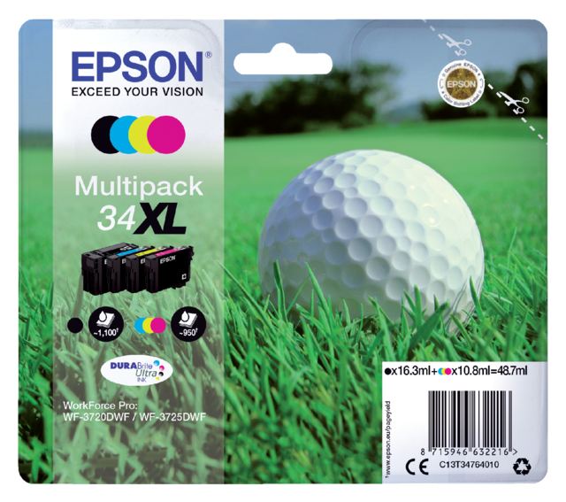 Eigenschappen "Inktcartridge Epson 34XL T3476 zwart + 3 kleuren"