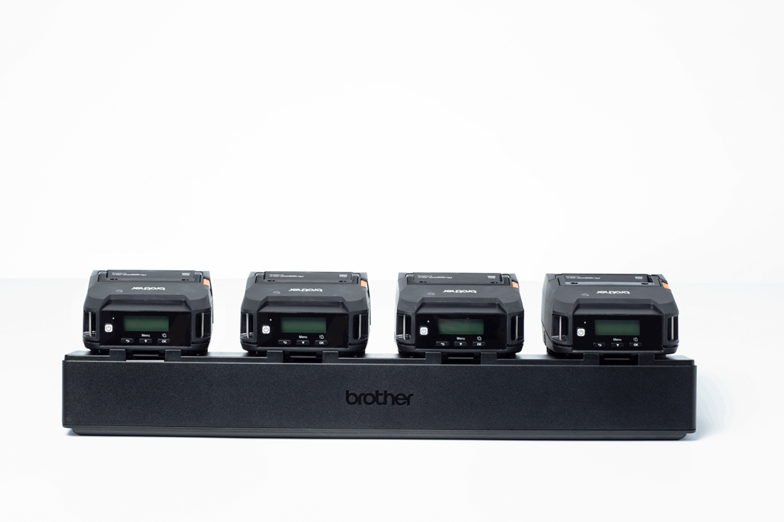 Laadstation voor vier Brother mobiele RJ-3230BL en RJ-3250WBL label- en bonprinters.