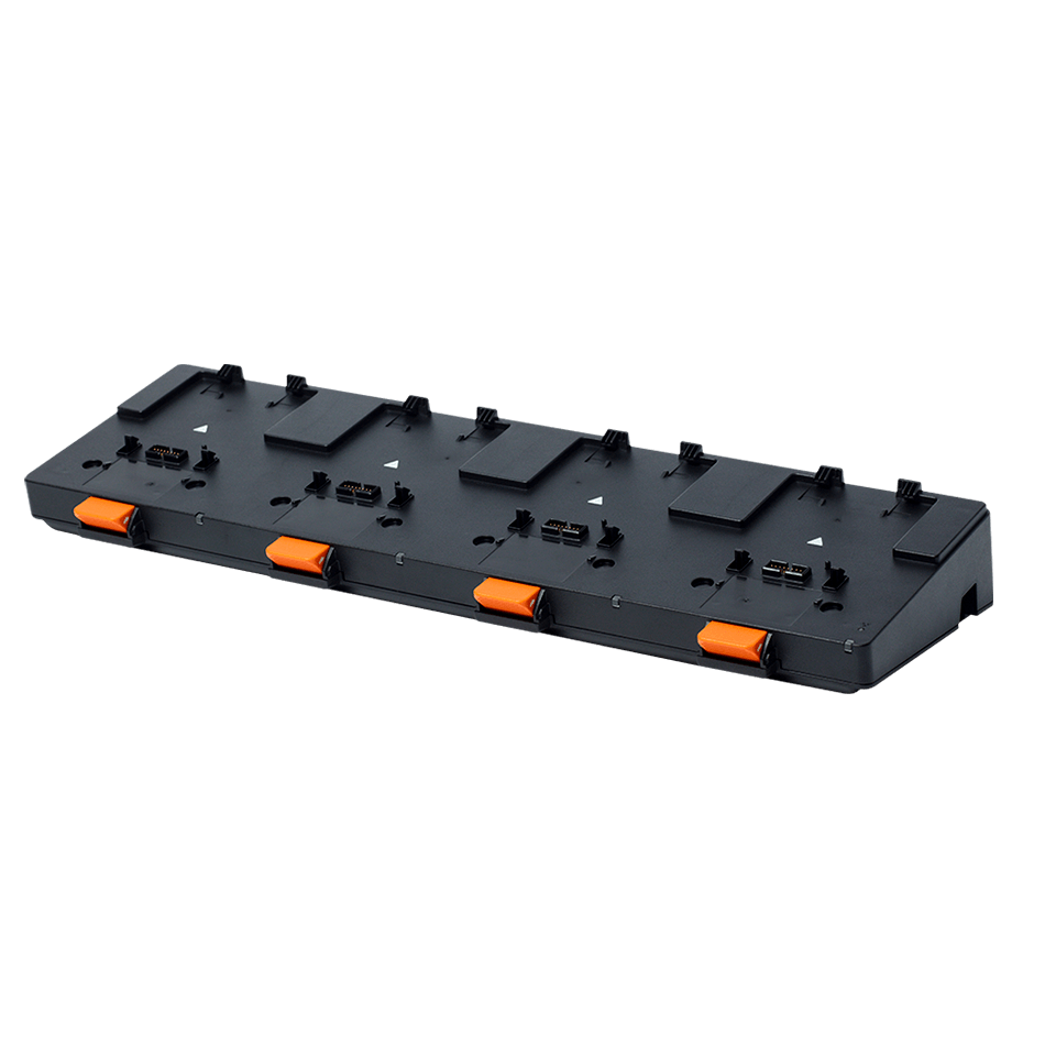 Met het PA-4CR-003 laadstation is het mogelijk om tot 4 mobiele RJ-3200 labelprinters op te laden, zodat medewerkers aan het begin van hun dienst kunnen beschikken over volledig opgeladen printers.