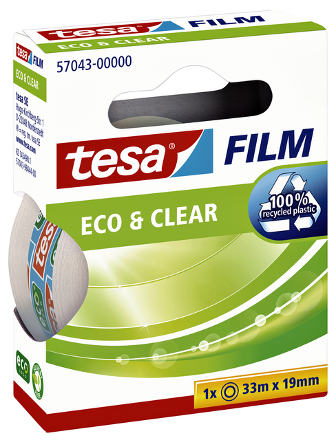 - tesafilm® eco & clear is een milieuvriendelijke en vrijwel onzichtbare tape die gerecycleerde materialen combineert met hoogwaardige prestaties.