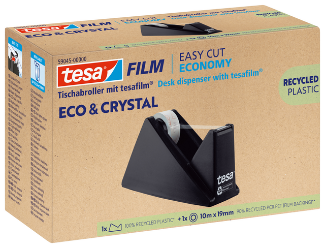 Plakbandhouder Tesa eco&crystal 59045 zwart met 1 rol tape 19mmx10m