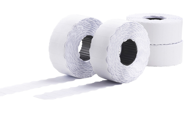 - Permanent klevende witte etiketten voor 2-regelige prijstang (PL2/18) van Avery.