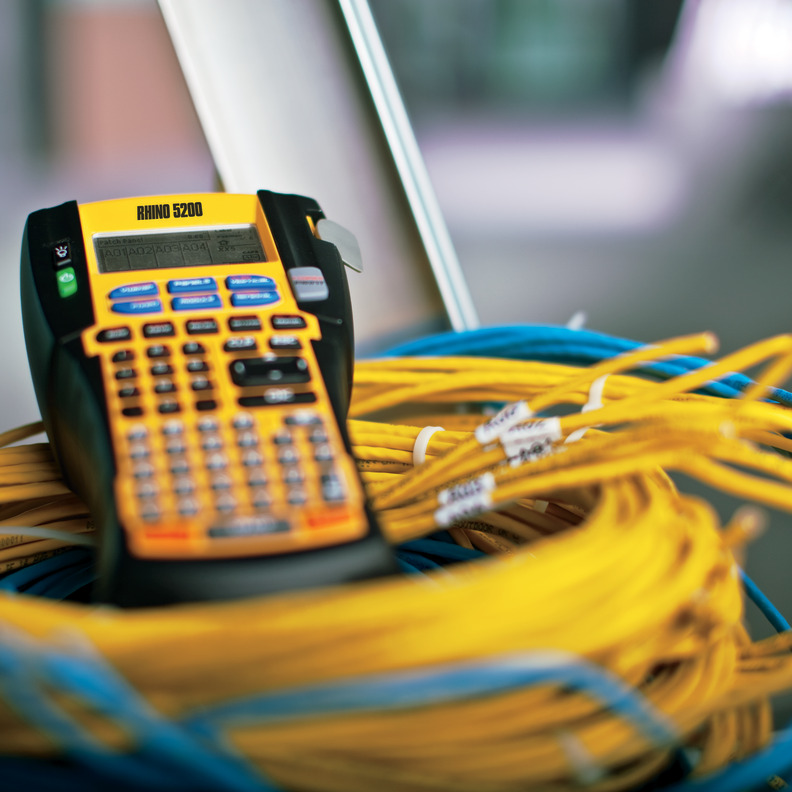 Het is nu eenvoudiger dan ooit om uw installaties een nette, professionele uitstraling te geven en uw reputatie te versterken! Snel, robuust en voorzien van tijdbesparende functies, helpt de RHINO™ 5200 om te voldoen aan de ANSI/TIA/EIA-606-A standaarden. Bovendien is hij ontworpen voor professionele installateurs die werken onder veeleisende omstandigheden. Met de sneltoetsen drukt u vooraf opgemaakte labels af, met verticale opmaak of vaste lengte, voor kabels en snoeren, terminalblocks, elektrische en schakelpanelen. De RHINO 5200 gebruikt labels meet een eenvoudig te verwijderen achterstrip met industriële lijm, beschikbaar in vijf materialen, zodat u er zeker van bent dat uw labels zelfs in de meest zware omstandigheden blijven zitten en leesbaar blijven.