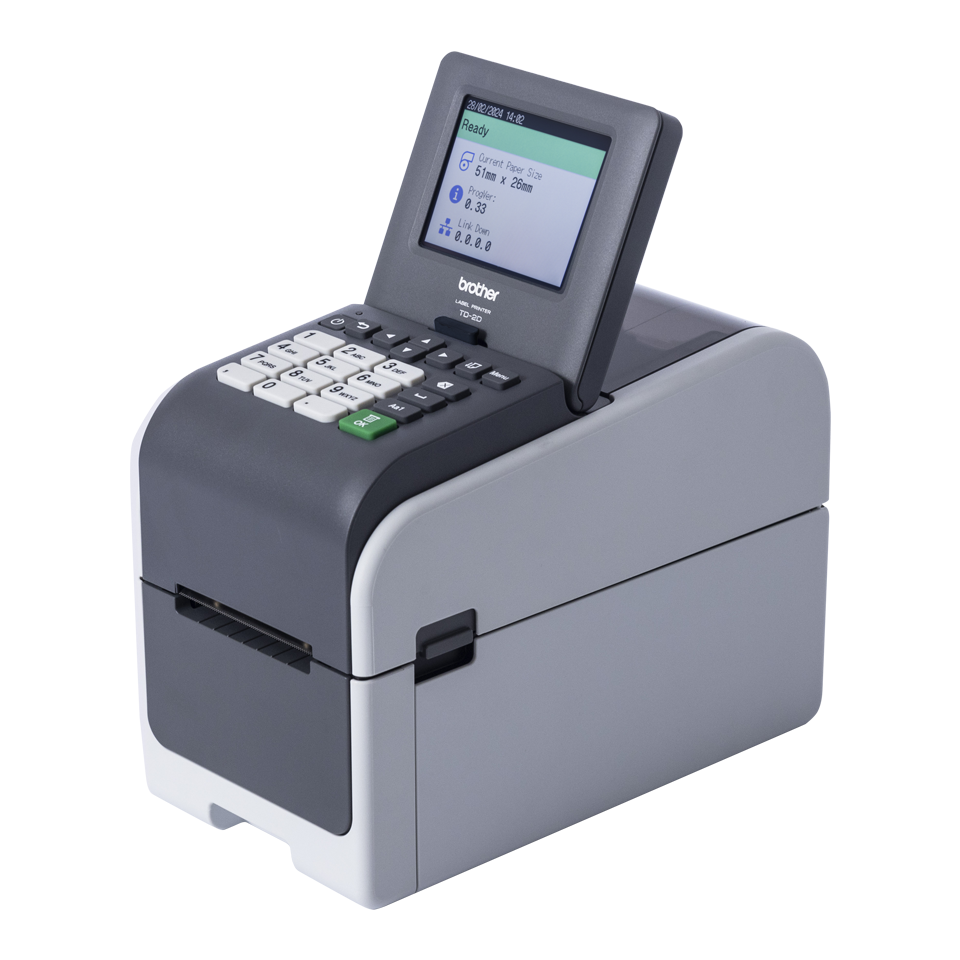 Dankzij veelzijdige verbindingsmogelijkheden kan deze printer worden ingezet op meerdere locaties. De TD-2320DSA203 kan dankzij het 8,89 cm kleurentouchscreen worden gebruikt als stand-alone printoplossing. Met gebruik van de optionele batterij, kan de labelprinter tevens volledig draadloos en mobiel worden ingezet.
