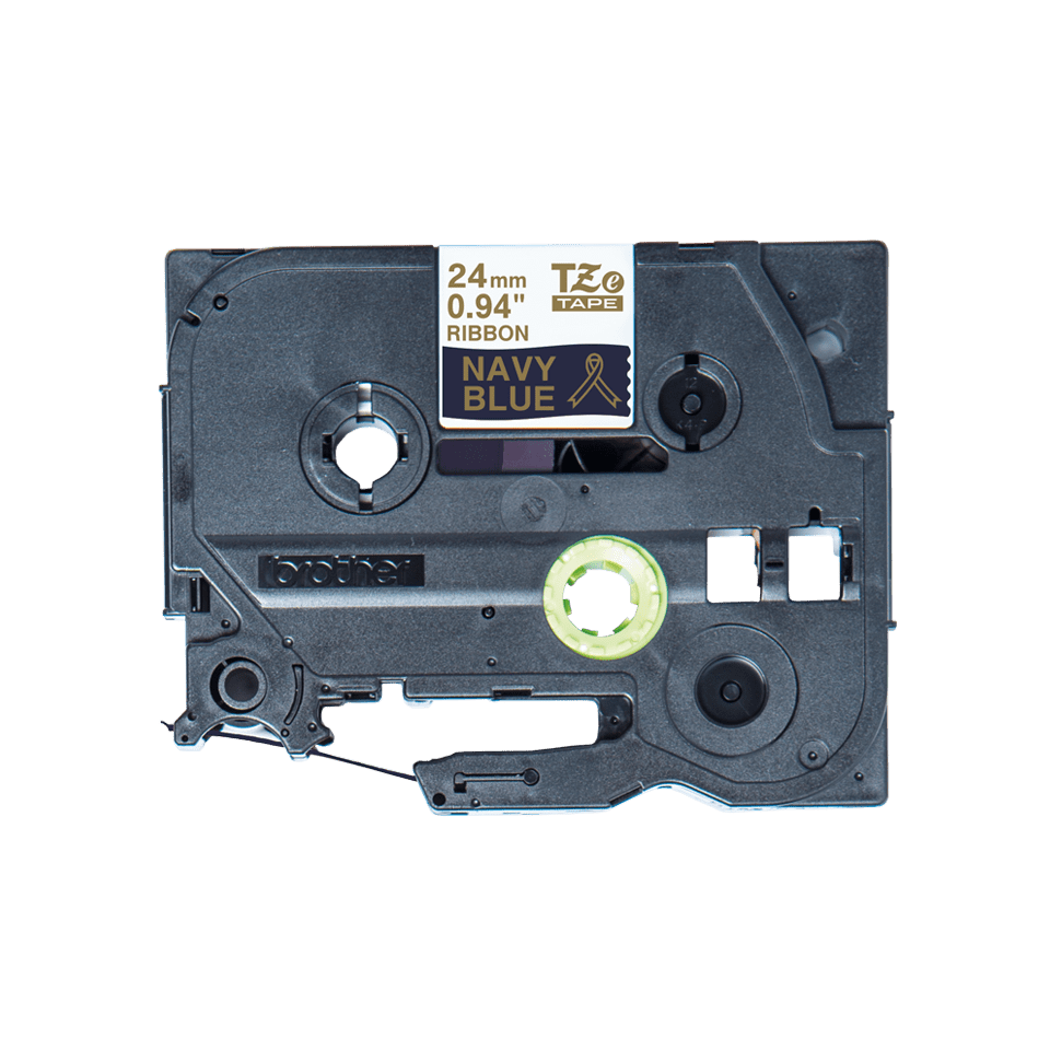 Brother TZe-RN54 stoflint goud op marineblauw - breedte 24 mm, lengte 4 meter is een mooi stoffen lint voor cadeau's, feestdecoraties en hobbyprojecten.