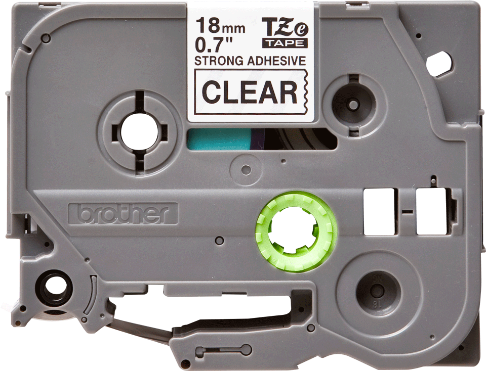TZe-S141 18mm Zwart op Helder Sterk klevend De sterk klevende TZe tape is bedoeld voor ruwe, moeilijke ondergronden en zorgt door de extra sterke lijmlaag voor een goede kleefkracht.