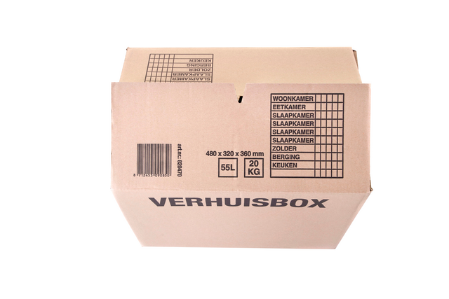 - Deze verhuisdoos is perfect voor het verhuizen van al je spullen. De doos is gemaakt van stevig karton met dubbele golf en heeft een inhoud van 55 liter. De afmetingen van de doos zijn 480x320x360mm, waardoor hij geschikt is voor het verpakken van verschillende soorten spullen.De verhuisdoos IEZZY 480x320x360mm bruin is zeer duurzaam en kan meerdere keren worden gebruikt. De doos kan worden beladen met een maximum gewicht van 20 kg en is FSC-gecertificeerd. De kleur bruin geeft de doos een stijlvolle uitstraling en past bij elk interieur.