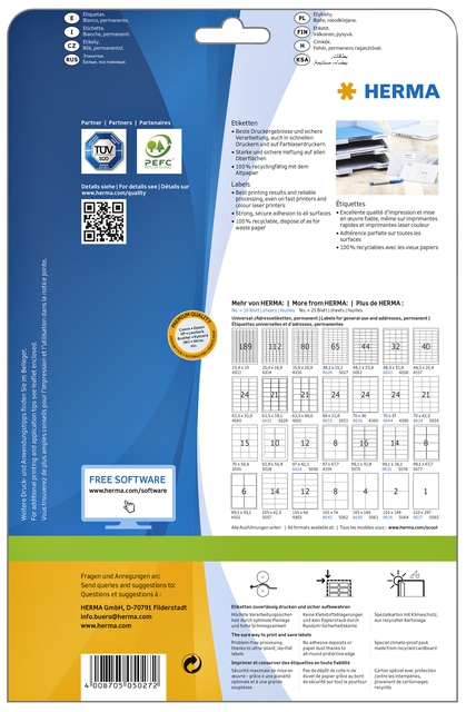 Properties "ETIKET HERMA 5027 A4 38.1X21.2MM PREMIUM WIT"
